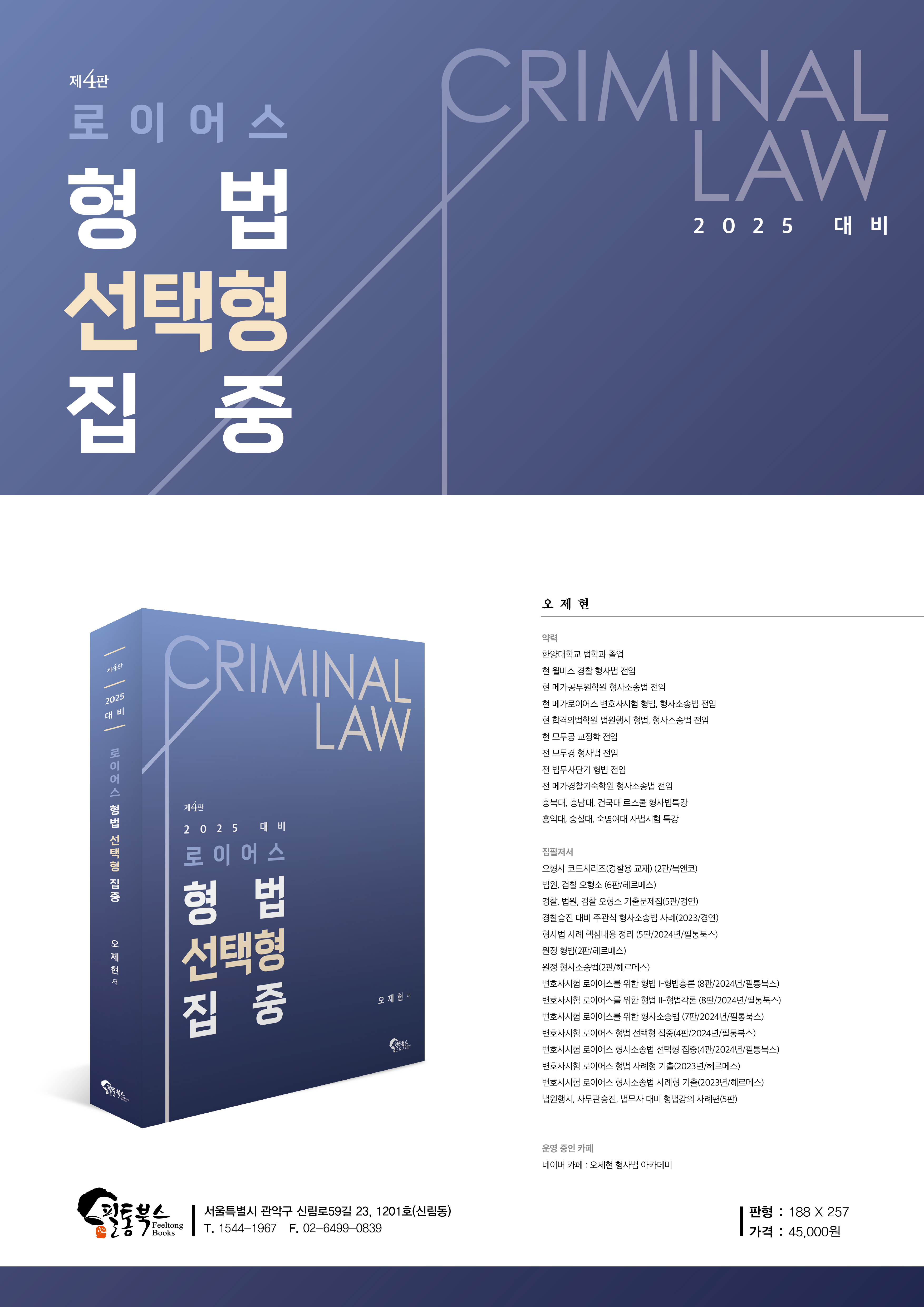 ▶ 현 합격의법학원 법원행시 형법, 형사소송법 전임