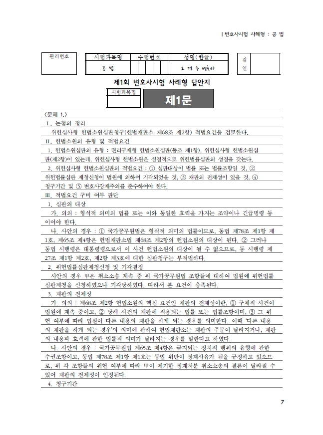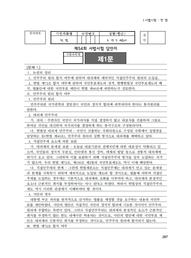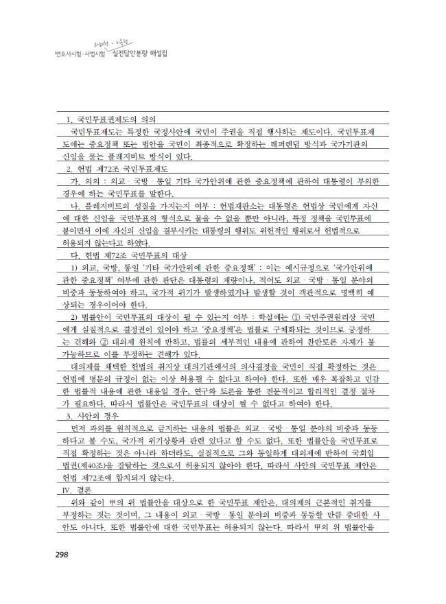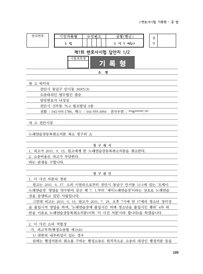 제 목: [변호사시험, 사법시험] 사례형 기록형 실전답안분량 해설집