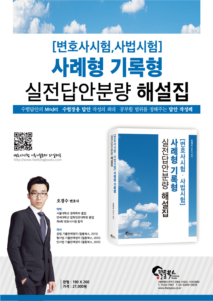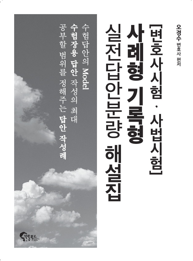 협소한 답안지 안에 ‘틀에 맞고 논점 누락이 없으며 법학 논리에 맞는 답안’을 쓰기 위해서는, 평소에 키워드 중심으로 상당히 압축되고 정제된 문장을 쓰는 연습을 해야 한다는 것, 그리고 특정 논점이 출제될 것을 대비해서 답안지에 쓸 내용을 미리 준비해야 한다는 것, 바로 그것이 본 실전답안분량 해설집 시리즈의 공저자들이 수험생 여러분께 보여드리고 싶었던 점입니다.