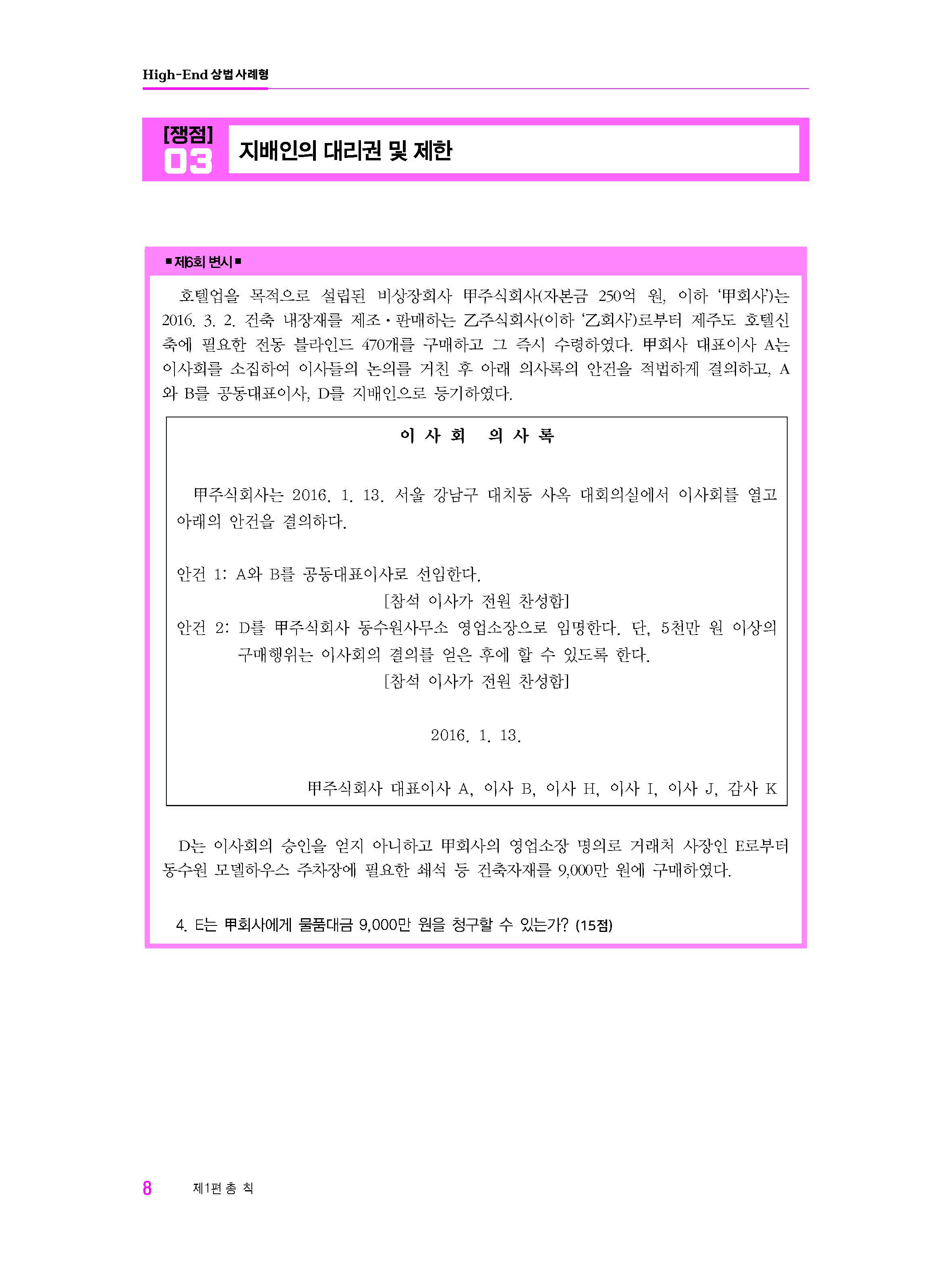 제 목: High-End 상법 사례형