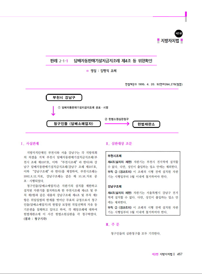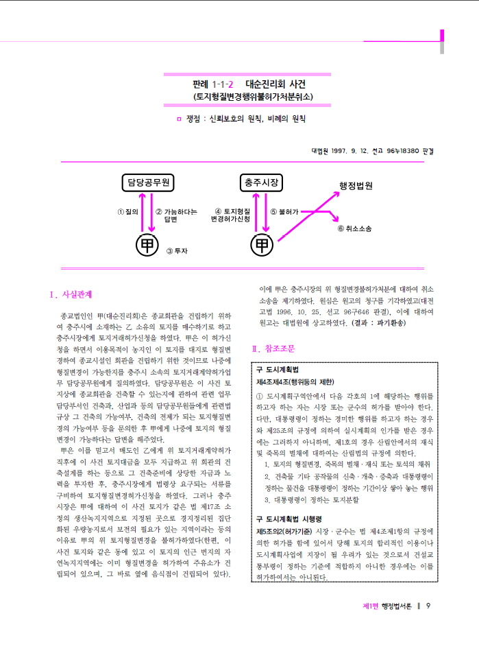 법조인으로서의 논리적 사고력을 고양시키고 원심-대법원의 차이를 감지하도록 하기 위해 「원심판례」를 먼저 소개한 뒤에 「대법원 판례」를 배치하였다.