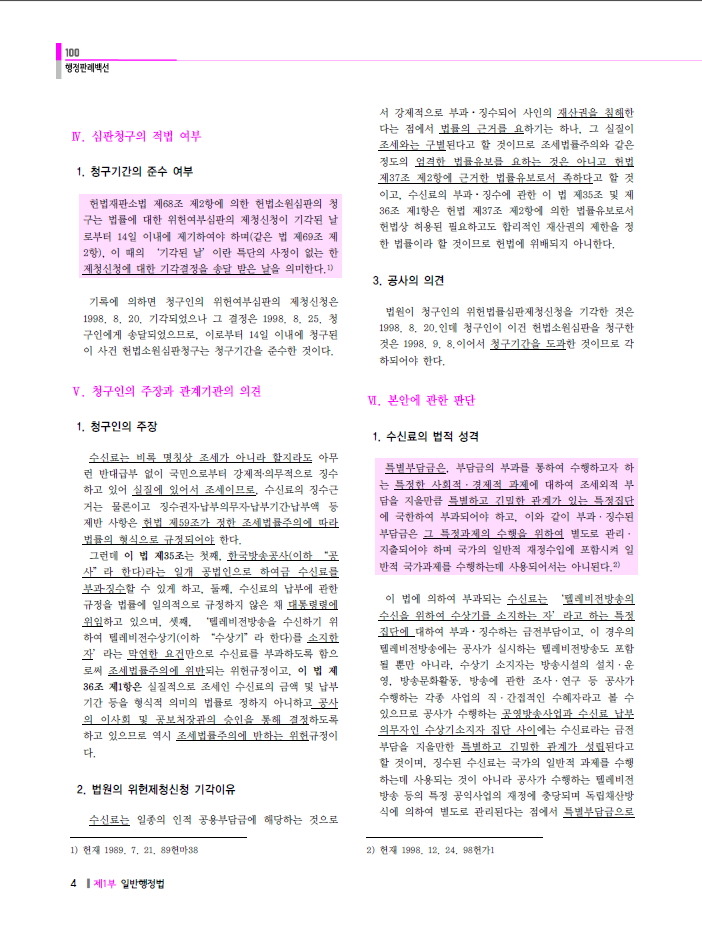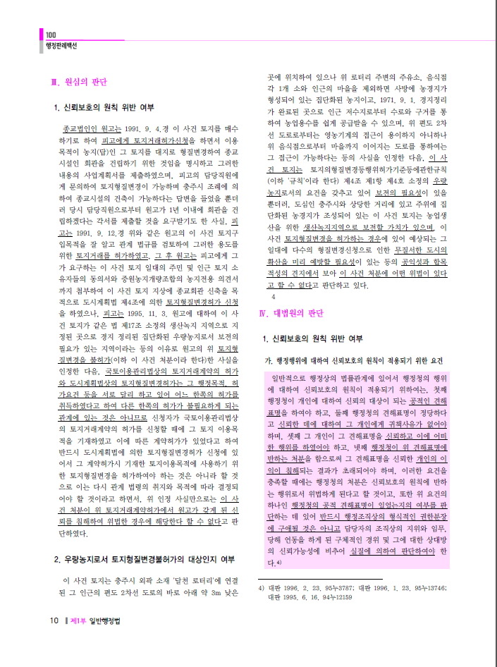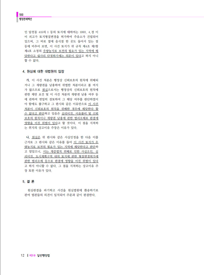 시각적 이해를 높이기 위해 판례의 주요 원칙론적 설시 부분을 음영 처리하거나, 박스 또는 밑줄 등으로 판례의 중요 부분을 강조하였다. 특히 행정법 학습이 어느 정도 이루어진 경우로서 단시간에 정리하고자 하는 때에는 이러한 강조 부분을 중심으로 읽으면 좋을 것이다.