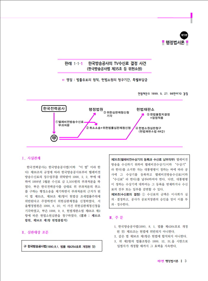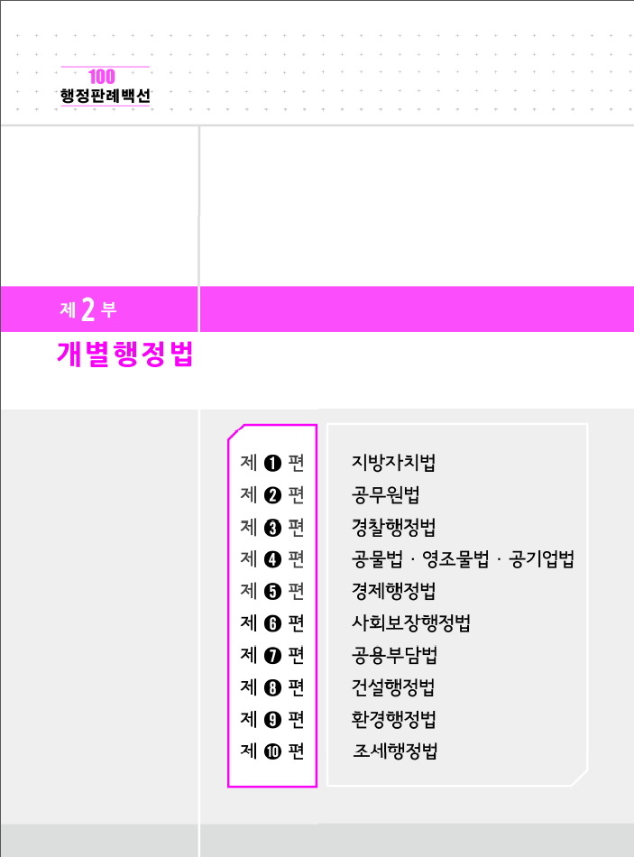 교재의 순서는 수험생의 혼선을 피하기 위해 일반적으로 채택된 교과서 및 공저자의 『판례행정법』의 순에 따랐다.