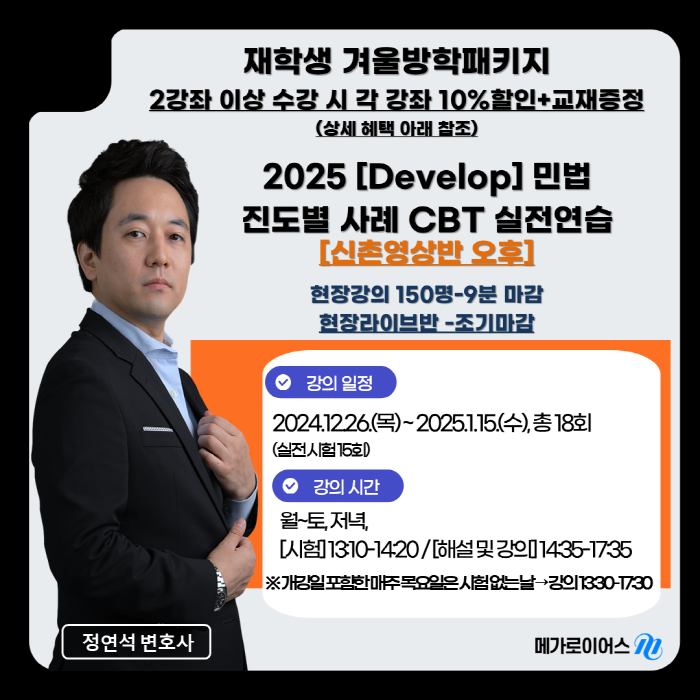 신촌 [개강]정연석 변호사2025 [신촌영상반 오후][Develop] 민법 진도별 사례 CBT 실전연습[12/26(목) 개강]