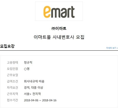 [㈜이마트] 이마트몰 사내변호사 모집 (~4/16) 작성자법률채용원츄|작성시간18.04.10|조회수376 목록 댓글 0 글자크기 작게가 글자크기 크게가 *자세히 보기를 누르시면 해당페이지에서 내용을 확인하실수 있습니다 ▶ 자세한 채용공고 확인 (클릭!) ◀ 다음검색 현재 게시글 추가 기능 열기 북마크 신고 센터로 신고 댓글 댓글 0 댓글쓰기 답글쓰기 댓글 리스트