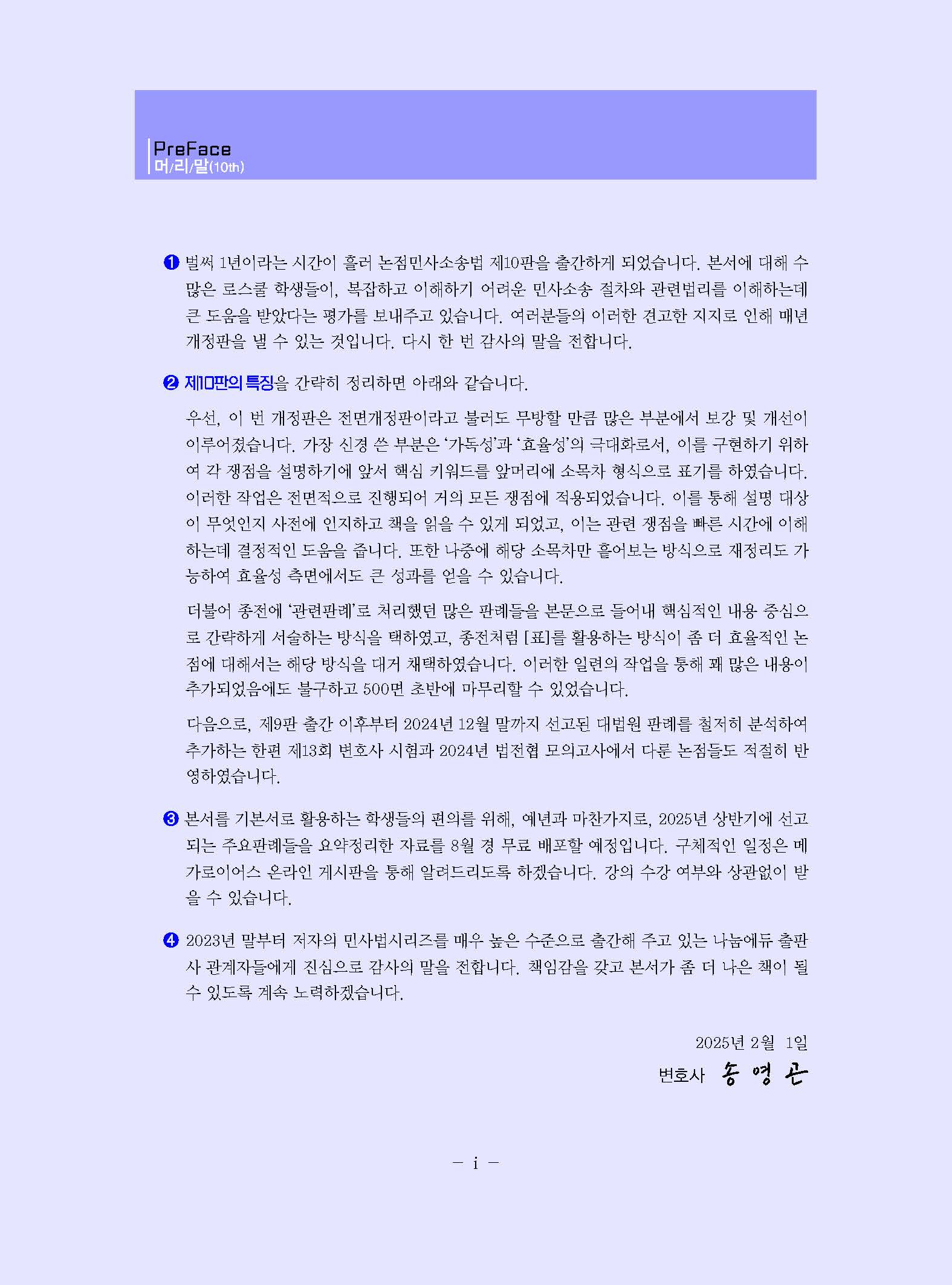 [나눔에듀] 송영곤 변호사님의 2025 논점 민사소송법(제10판) 2025.2.7(금)출간~~ 작성자나눔에듀|작성시간25.02.02|조회수376 목록 댓글 0 글자크기 작게가 글자크기 크게가 송영곤 변호사님의 2025 논점 민사소송법(제10판) 2025.2.7(금)출간~~ 다음검색 현재 게시글 추가 기능 열기 북마크 공유하기 신고 센터로 신고 댓글 댓글 0 댓글쓰기 답글쓰기 댓글 리스트