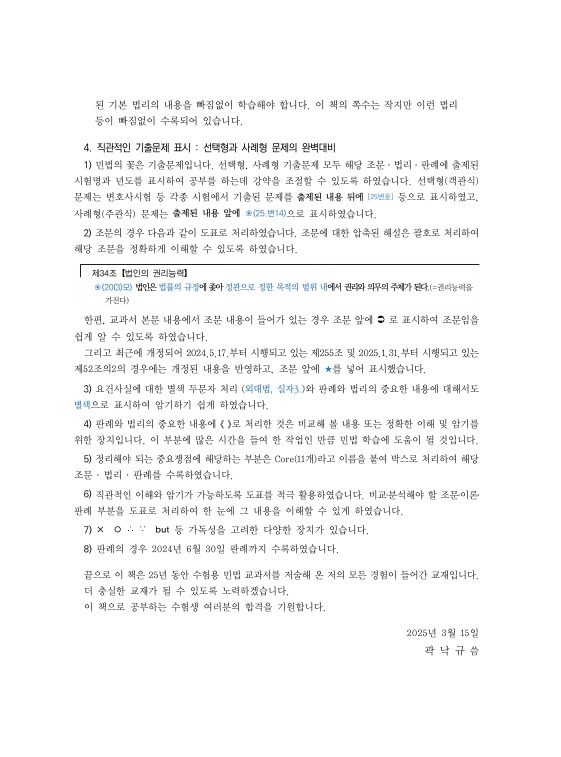 기출문제, 조문, 요건사실, 중요한 판례와 법리 등 중요한 부분을 강조하여 직관이면서 효율적인 학습이 가능하도록 하였습니다.
