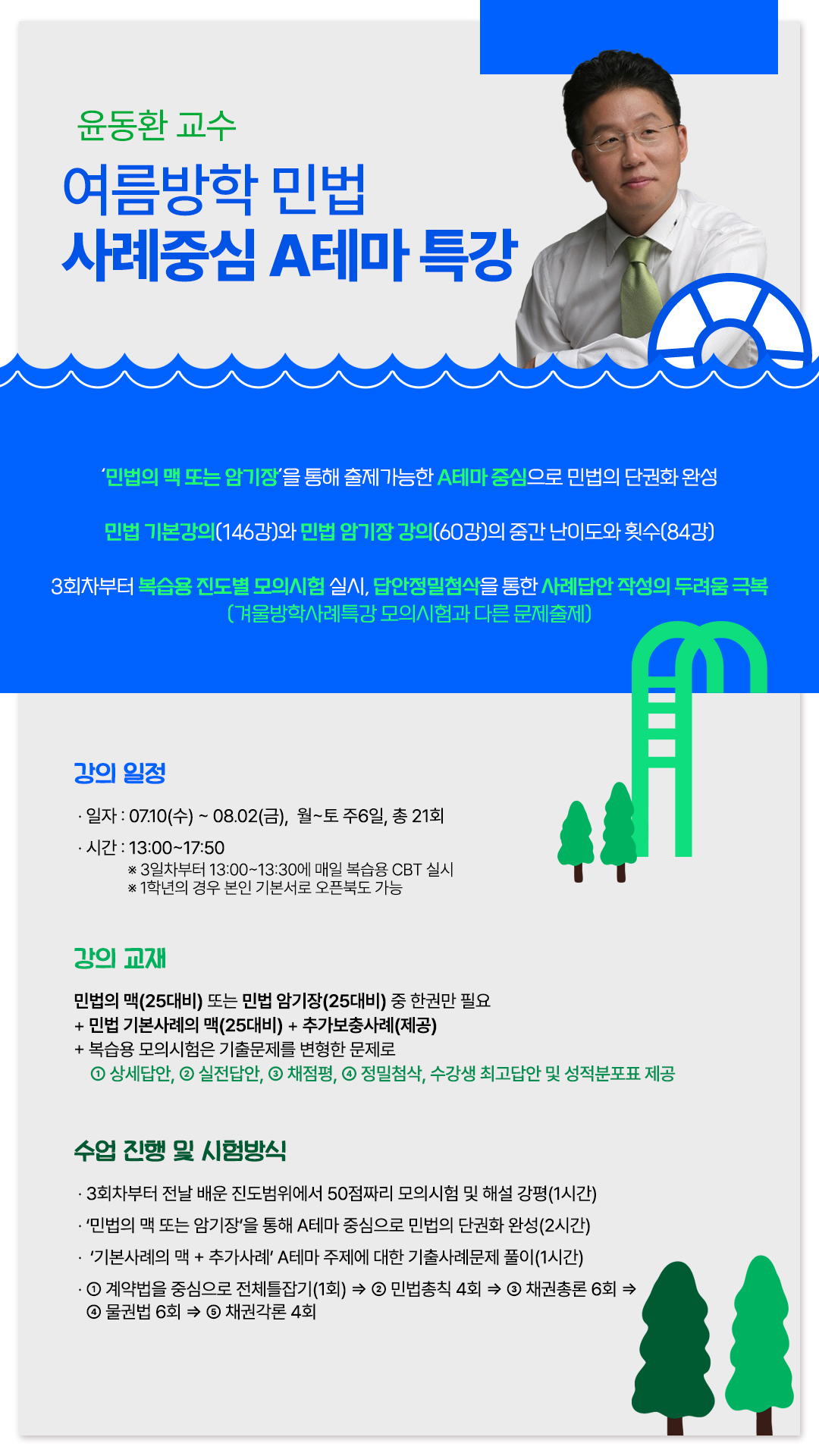 윤동환 교수의 여름방학 민법 사례중심 A테마 특강 안내입니다.