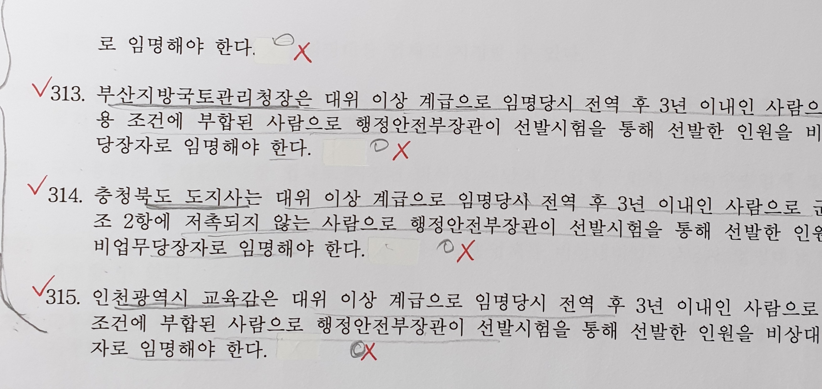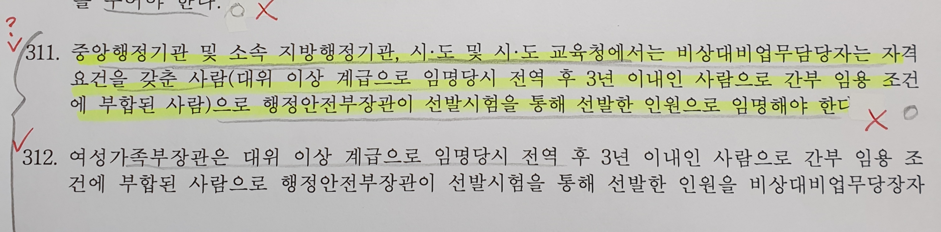 비대법 진위형 p.23(문311~315) 작성자이병모|작성시간20.01.26|조회수380 목록 댓글 2 글자크기 작게가 글자크기 크게가 교수님 수고하십니다중앙행정기관 및 소속 지방행정기관, 시도 및 시도 교육청에도 자격요건을 갖춘 사람을 보직해야 하는걸로 아는데 왜 틀렸는지 모르겠습니다 다음검색 현재 게시글 추가 기능 열기 북마크 공유하기 신고 센터로 신고 댓글 댓글 2 댓글쓰기 답글쓰기 댓글 리스트 작성자즐거운인생 | 작성시간 20.01.26 행정안전부령으로 정하는 사람은 군 출신이 아니어도 가능합니다. 즉, 군출신이 아닌 사람 중에서 행정안전부령으로 정하는 사람은 선발시험만 합격하면 임명할 수 있습니다. 위의 문제들은 군 출신 중에서 선발시험에 합격한 사람으로만 임명해야 한다고 되어 있기 때문에 틀린 내용입니다. 답댓글 작성자이병모 작성자 본인 여부 작성자 | 작성시간 20.01.26 감사합니다 이해 하였습니다 댓글 전체보기