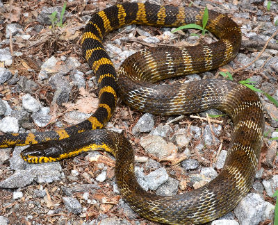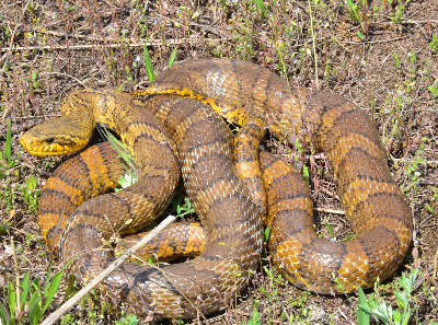 구렁이는 우리나라에 서식하는 파충류 중 가장 큰 대형종으로 몸길이는 1~2m 정도이며 등의 색깔이 검은색, 암갈색, 황갈색 등 다양하며 배 부분은 황백색, 회백색이나 흑갈색 반점이 흩어져 나타난 경우도 있다.