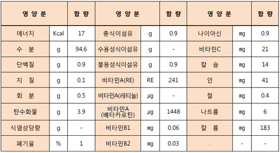 ↑ [조선닷컴]토마토의 100당 영양성분, 출처=농촌진흥청