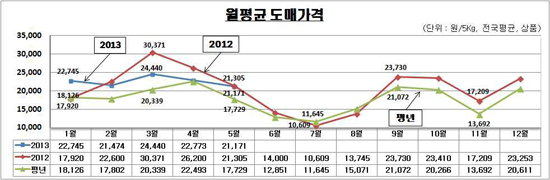 ↑ [조선닷컴]방울토마토 월별 도매가격 추이(전국) 출처=KAMIS(농산물유통정보)