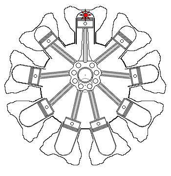피스톤은 중심축을 중심으로 둥글게 배열할 수 있어서 항공기엔진에 적합.