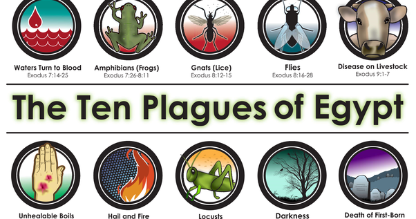 10) 초태생 재앙 : 생명의 신 프타아(Ptah), 재생의 신 민(Min), 출산 시 여인을 돌보는 신 헤케트(Hekqet), 어린이 수호신 이시스(Isis), 다산의 신 오시리스(Osiris)