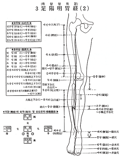 陽) 43. 함곡(陷谷) 44. 내정(內庭) 45. 여태( 兌)