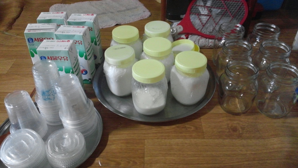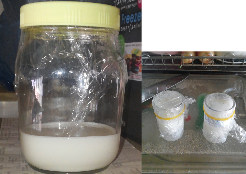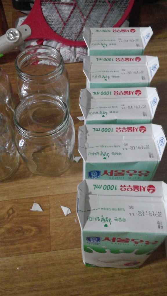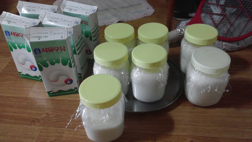 최초 배양 유리병은 정말 깨끗하게 소독하세요. 전자레인지에 2분 돌려주고 5분 정도 식히세요. 다시 한번 말씀드리지만 물 끓여서 열탕소독 하지 마세요. 사서 고생하지 마시라는 말씀입니다. 우유는 많이 말고, 대략 200~300ml만 부으세요. 최초 배양시에 우유를 많이 부우면 실패할 확률이 높습니다. 그러나 겁먹지 마세요. 시간이 오래걸릴뿐 배양은 됩니다.