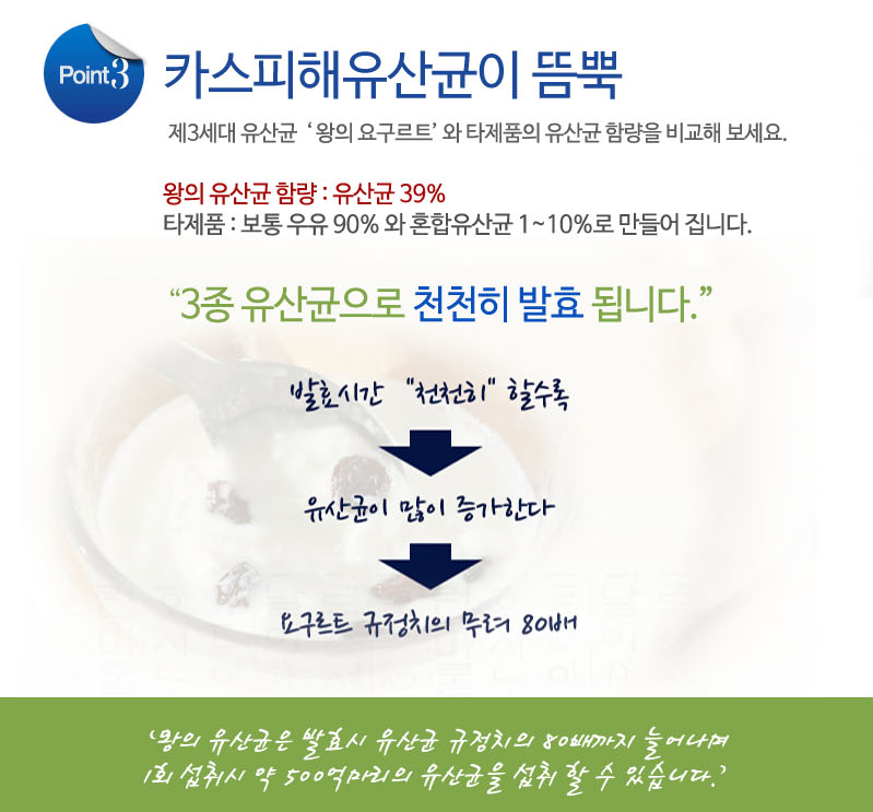 아래는 왕의 유산균, 카스피해 유산균, 캐피어 유산균 스타터의 내용입니다. 우리집은 카스피해 유산균을 2년 배양해 먹었고, 냉동실에 넣어두었던 씨앗이 이젠 동이 났습니다. 그래서 새로 유산균 종균을 구매하려하고요. 이번엔 왕의 유산균으로 주문했습니다.