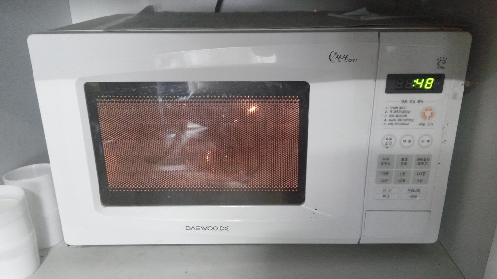 왜 이런 과정을 거치느냐?! 뚜껑 바로 덮으면 공기가 들어갑니다. 그리고 뚜껑은 전자레인지로 소독하기가 곤란합니다. 찌그러지죠. 때문에 뚜껑은 평소에 물로만 씻으시고, 랩을 이용해서 밀봉을 하세요. 이게 포인트입니다. 최대한 사람의 손을 적게 거쳐야 합니다.