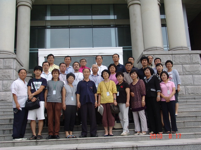 순리치유학 교수요원 하계 훈련을 마치고 - 천안 나사렛 대학 현관 앞에서 - 앞줄 좌측 끝이 필자