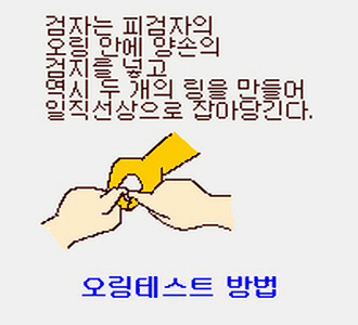 즉 오링(O-Ring) 테스트란 엄지와 검지로 영문자 오(O)를 그리도록 고리(Ring)를 만듭니다.