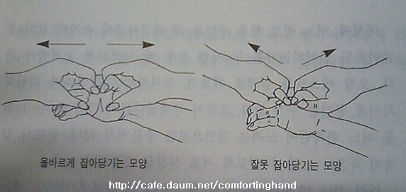 좌우로 당기는 방향은 반드시 일직선상이어야 한다.