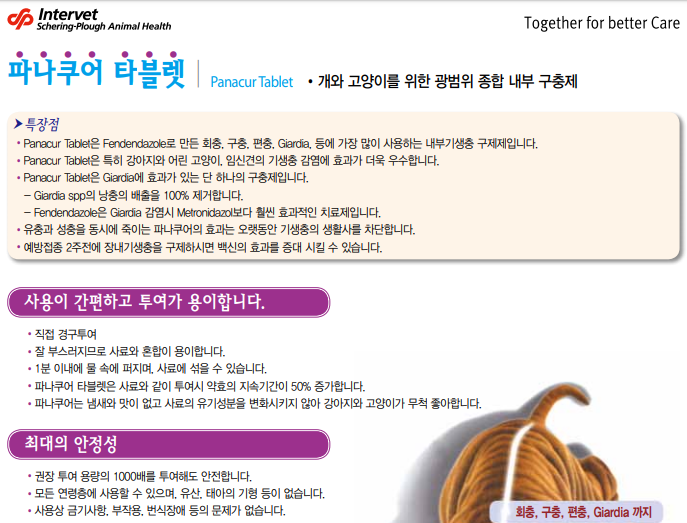 파나쿠어는 강아지나 고양이 제품으로 아래처럼 타블렛 형태입니다.