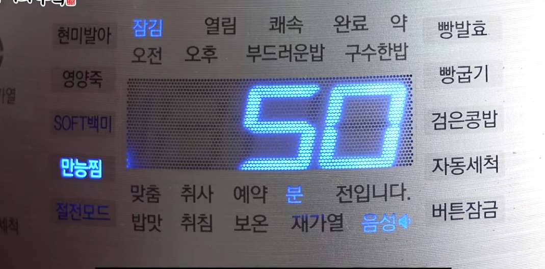 취사: 만능찜 기능으로 40분간 조리합니다. 만능찜 버튼이 없다면 취사 버튼을 양에 따라 2~3번 반복하면 됩니다.