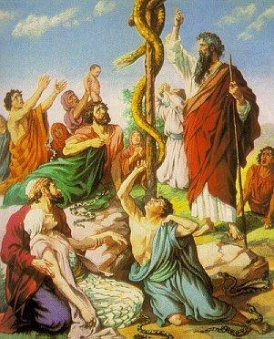 4 백성이 호르 산에서 진행하여 홍해 길로 좇아 에돔 땅을 둘러 행하려 하였다가 길로 인하여 백성의 마음이 상하니라 5 백성이 하나님과 모세를 향하여 원망하되 어찌하여 우리를 애굽에서 인도하여 올려서 이 광야에서 죽게 하는고 이 곳에는 식물도 없고 물도 없도다 우리 마음이 이 박한 식물을 싫어하노라 하매 6 여호와께서 불뱀들을 백성 중에 보내어 백성을 물게 하시므로 이스라엘 백성 중에 죽은 자가 많은지라 7 백성이 모세에게 이르러 가로되 우리가 여호와와 당신을 향하여 원망하므로 범죄하였사오니 여호와께 기도하여 이 뱀들을 우리에게서 떠나게 하소서 모세가 백성을 위하여 기도하매 8 여호와께서 모세에게 이르시되 불뱀을 만들어 장대 위에 달라 물린 자마다 그것을 보면 살리라 9 모세가 놋뱀을 만들어 장대 위에 다니 뱀에게 물린 자마다 놋뱀을 쳐다본즉 살더라