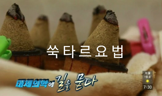 쑥을 피운 연기로 가장 효과를 볼 수 있는 곳은 이비인후과와 호흡기의 질환이다. 이비인후과에서 비염이나 알레르기 등은 증상을 완화시킬 뿐 치료법이 없다고 하지만 쑥연기를 흡입시키면 구취 비염 측농증 결막염 알레르기 감기 독감 후두염 인후염 기관지염 폐렴 폐결핵 등에도 대단히 효과적이다. 쑥연기를 두 달 정도 흡입하여 기관지염 비염 인후염 등이 사라진 이야기도 있다.