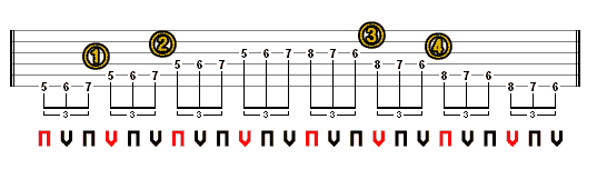 얼터네이트 피킹 패턴의 변화의 규칙성을 몸에 충분히 익히세요.