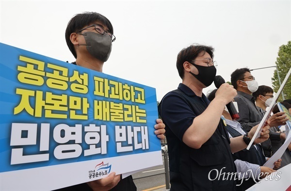 김 실장의 발언 이후 이재명 더불어민주당 총괄선대위원장은 지난 26일 인천 지역 시민사회단체 주최로 열린 '공항·철도·전기·수도 민영화 반대 회견'에서 "국민의힘 정부가 들어서면서 다시 민영화에 대한 악몽이 되살아나고 있다"며 "'경쟁·시장화' 이런 발언에서 민영화의 암울한 그림자가 보이는 듯하더니, 이번에는 공항 공사 40% 민간 매각을 현 정부 실세 인사가 직접 발언하는 그런 상황에 이르렀다"라고 지적했다. 이에 대해 권성동 국민의힘 원내대표는 30일 "존재하지도 않은 민영화를 무슨 수로 금지하고 막겠다는 것인지 도무지 이해할 수가 없다"면서 "민주당의 '허언증' 선거운동이 점입가경"이라고 비난했다. 이같이 한쪽에서는 민영화다, 다른 쪽에서는 아니다라고 각을 세우고 있는 상황이지만 이날 서울 용산 대통령 집무실 앞에 모인 공공부문 노동자들의 입장은 분명했다. "공공성을 파괴하고 자본만 배불리는 민영화가 몰려온다." 이날 공공운수노조는 입장문을 통해 "윤석열 정부가 공기업의 소유권을 민간에 완전히 넘기는 것만 민영화로 한정하니 민영화가 아니라는 말장난을 하는 것"이라면서 "민영화란 공공의 자산이나 지분을 민간에 넘기는 '소유의 민영화'뿐만 아니라 서비스의 공급을 민간으로 대체하는 '생산의 민영화', 공공서비스 민간 투자 후 이윤을 보장하는 '재원의 민영화', 공공서비스 관련 경쟁 도입이나 영리 제한 등 관련 규제를 완화하는 '시장의 자유화' 등이 모두 민영화"라고 강조했다. 구체적으로 박대성 인천공항지역지부 지부장은 "인천공항공사는 벌써부터 '생산·효율성'을 이야기하며 인력 감축과 구조조정을 시도하고 있다"면서 "인천공항 현장에 800명의 인력이 부족하지만 인력 충원은 이뤄지지 않고 있다. 수익을 이유로 자기부상철도의 철도사업 폐업과 구조조정을 추진하고 있다"라고 말했다. 최재순 발전산업노조 부위원장도 "모든 것을 민영화로 만들고자 했던 MB시절 시즌2가 다시 시작되는 듯하다"면서 "전력분야만 한정해 보아도 정부는 '한전이 독점하던 전력구매계약을 점진적으로 시장에 개방한다'고 말했다. 이는 말이 좋아 독점을 깬다는 것이지 민간 참여를 허용해 민영화를 추진하겠다는 선언과 다르지 않다"라고 주장했다. "1분기 한전의 적자가 8조 원 발생했다. 원자재 값 폭등으로 인한 전력구매비용 상승이 원인인데 한전이 경영을 잘못해서, 탈원전을 해서, 방만경영을 해서 그렇다고 보수신문들이 말하고 있다. 정부는 그 대안으로 전력시장의 독점구조를 깨고 민간에 개방해 경쟁을 유도해야 한다고 말한다. 이를 바탕으로 민간자본에 독점적 이윤을 보장하는 우회 민영화를 추진하려는 거다." 윤석열 정부 국정과제 보고서를 살펴보면 국민의힘 주장처럼 '민영화'라는 단어는 등장하지 않는다. 하지만 공공부문 노동자들의 말처럼 '민간투자사업 활성화', '국유재산 민간 참여 개발 촉진', '민간중심 해외자원개발 및 재생에너지 확대, 경쟁과 시장 중심 전력 시장 구축', '철도차량 정비시장 민간 개방', '민간 해외 지출 지원', '민간 지원 중심 사회서비스원 개편' 등 곳곳에 공공부문의 역할을 민간으로 넘긴다는 계획이 포진돼 있다. 이날 공공운수노조는 "공공성 파괴하고 자본만 배 불리는 민영화에 반대한다"면서 오는 7월 2일 서울도심에서 총궐기 투쟁을 예고했다.