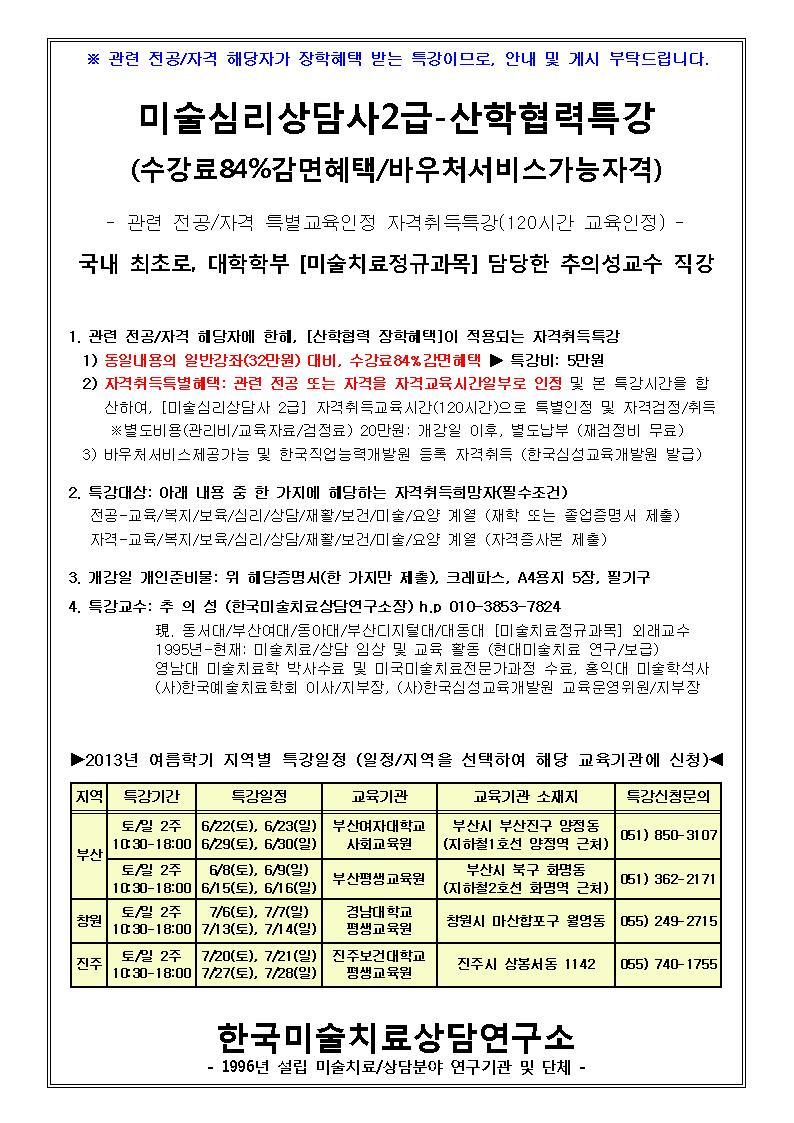 미술심리상담사2급 특강 안내문1304(지역별 특강일정-2013년 여름학기)메일게시용001001.jpg
