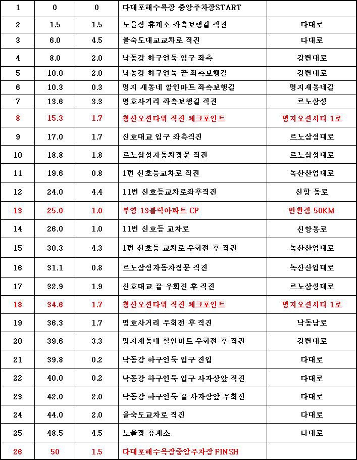 ▶코스 : 부산 비취울트라 마라톤대회 50km코스
