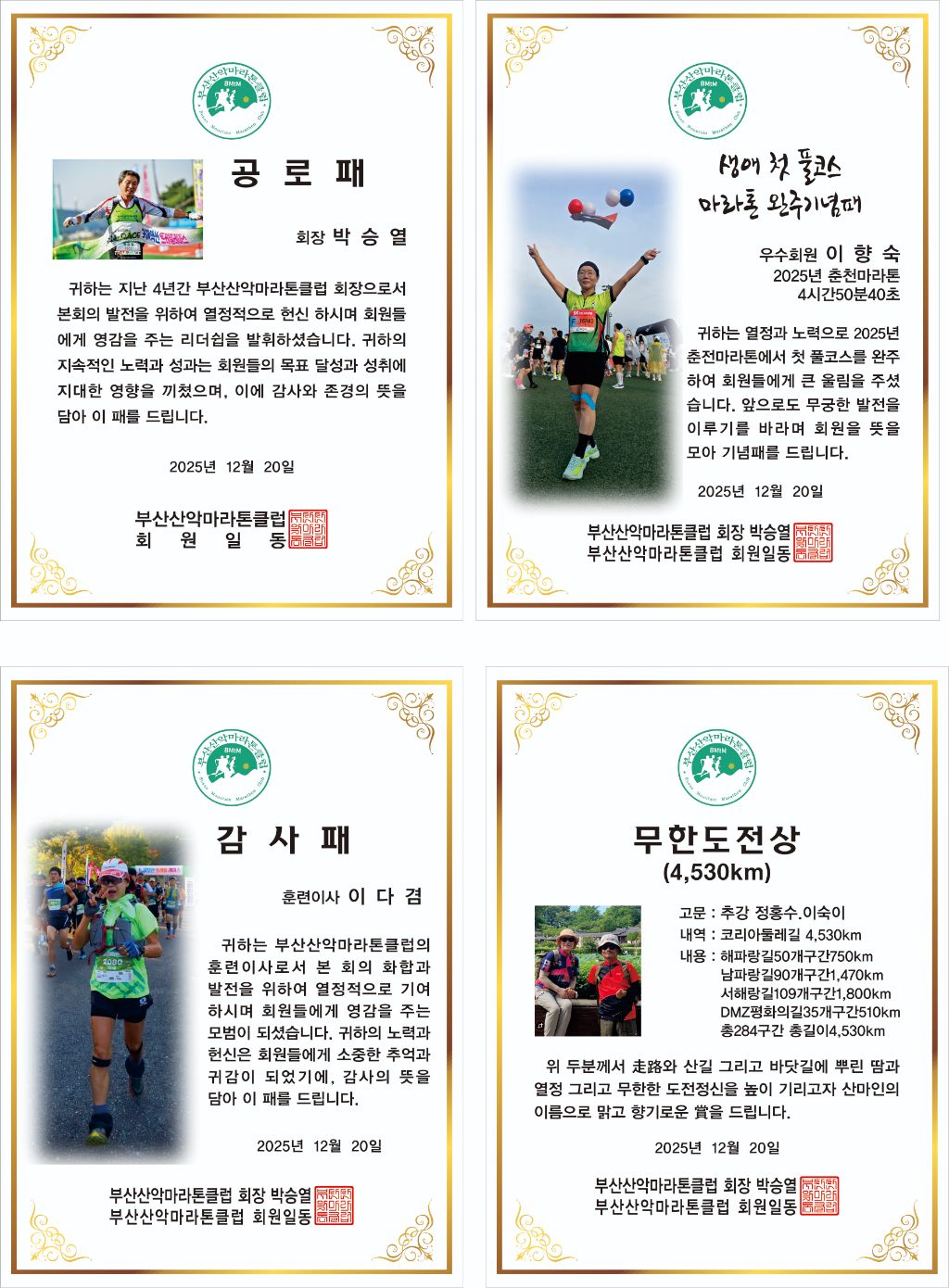 ● 생애첫풀코스 완주패 : 우수회원 이향숙