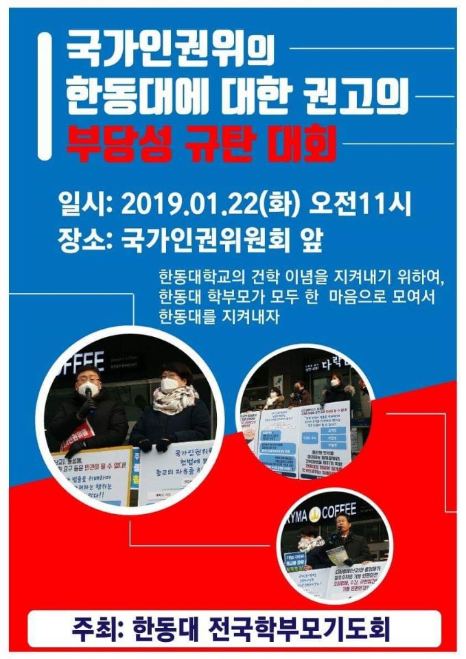 [반동연 공지] ❎한동대 학부모 국가인권위원회 규탄대회 안내❎ 건학이념에 따라 제정한 학칙 위반한 학생들을 징계한 한동대학교에 대해 인권침해라며 시정