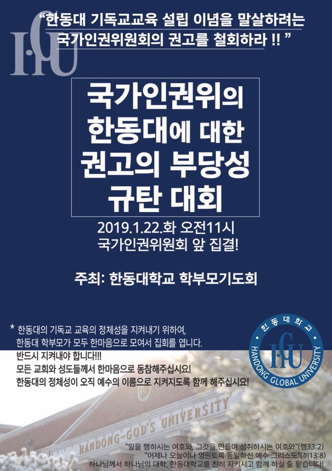 그래서 다음 주 화요일 오전 11시 한동대 학부모 700여명이 국가인권위 앞에서 규탄대회를 개최할 예정이니 동참 바라며, 기도해주시기 바랍니다.