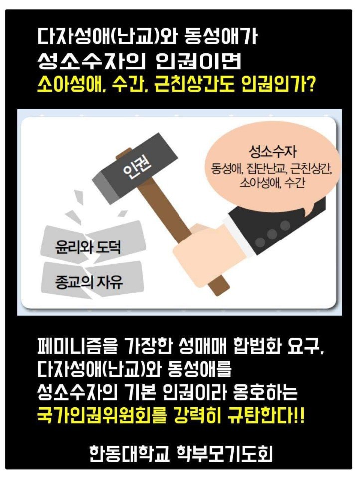 📌헌법에 보장된 종교의 자유조차 무시하고 다자성애, 동성애, 성매매를 인권이라 주장하는 국가인권위원회 강력 규탄한다!
