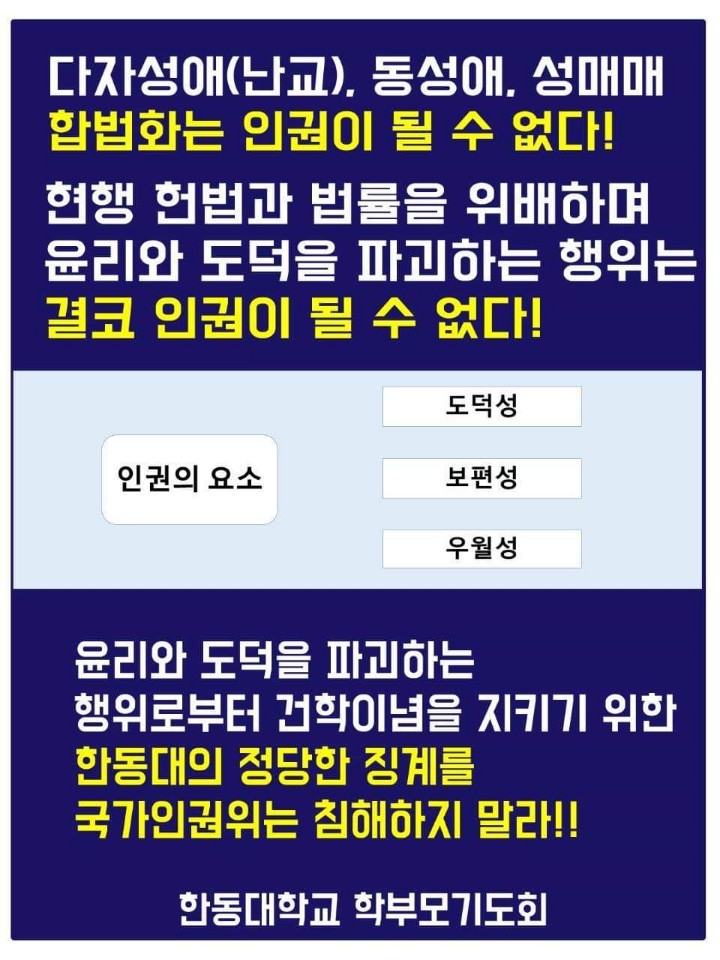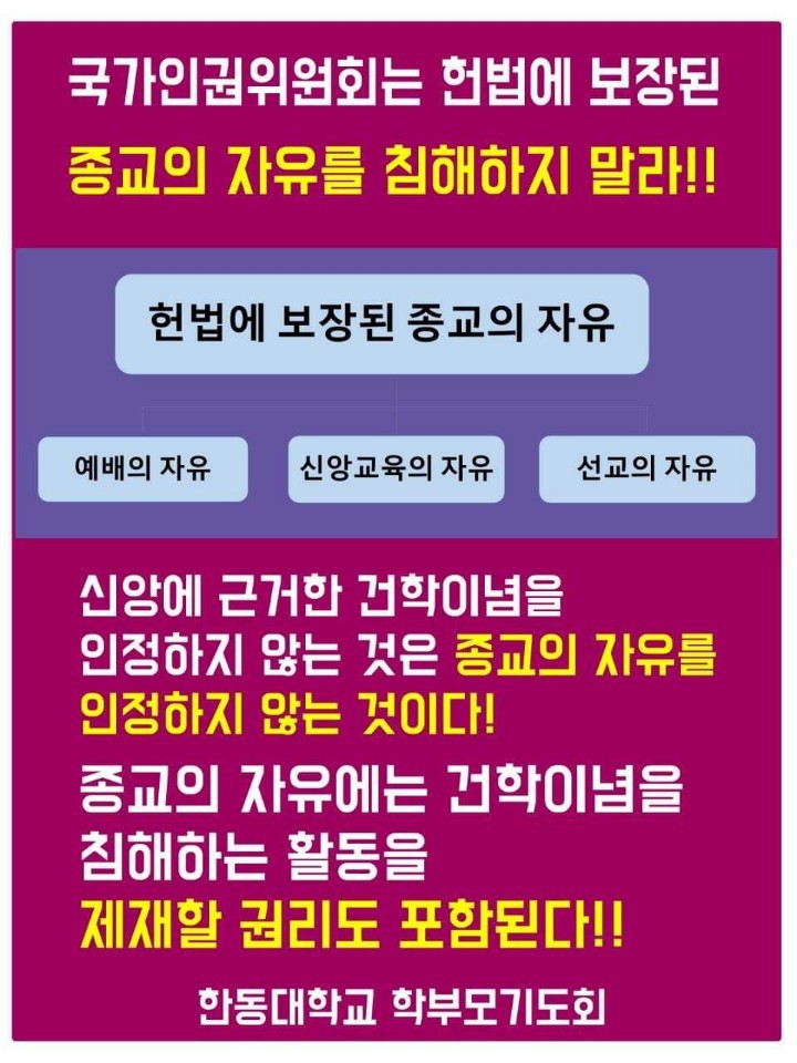 📌건학이념에 따른 학칙 위반 학생들에 대한 징계조치 철회하라는 국가인권위원회 즉각 해체하라!