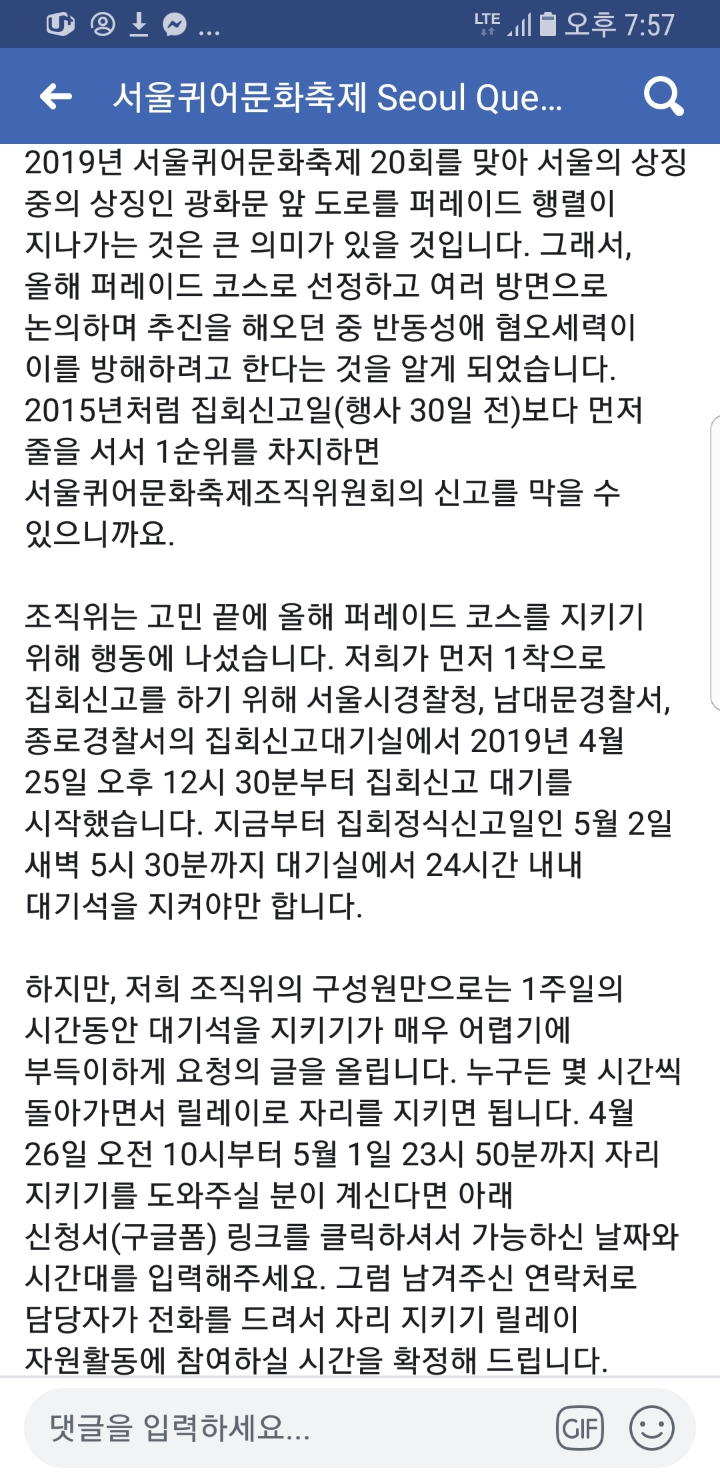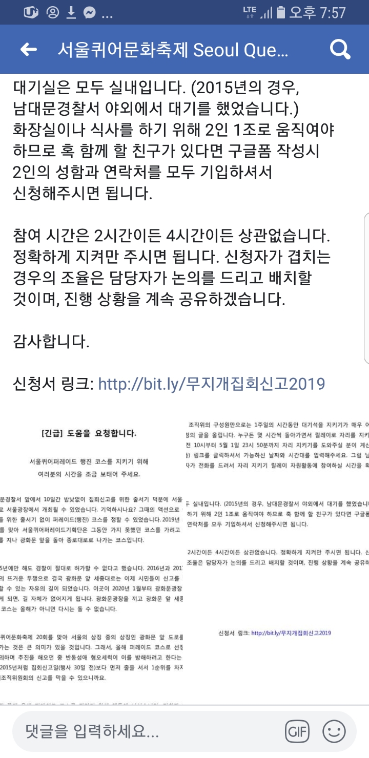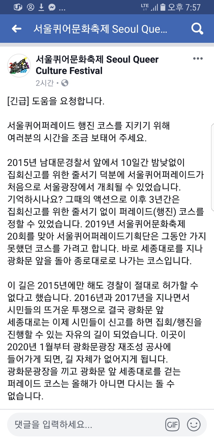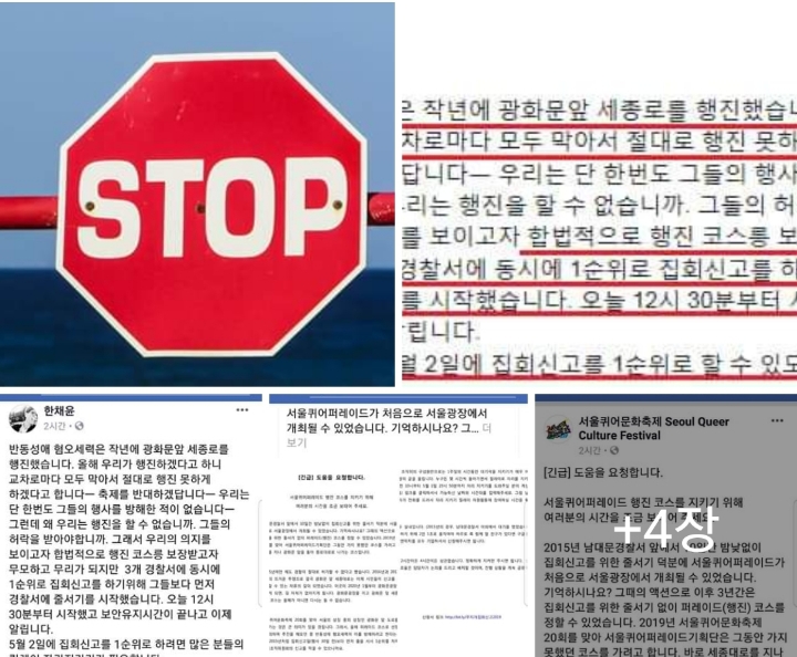 올해 거리행진은 자기들이 선점해 지금까지 우리 퀴어반대국민대회 측이 행진코스로 잡아온 광화문 앞 세종로를 장악하겠다는 겁니다!