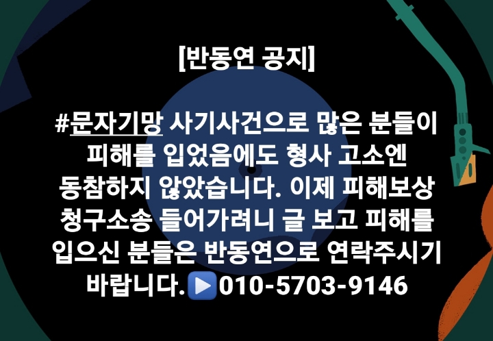 [반동연 공지] #문자기망 사기사건으로 많은 분들이 피해를 입었음에도 형사 고소엔 동참하지 않았습니다. 이제 피해보상 청구소송 들어가려니 글 보고 피해를