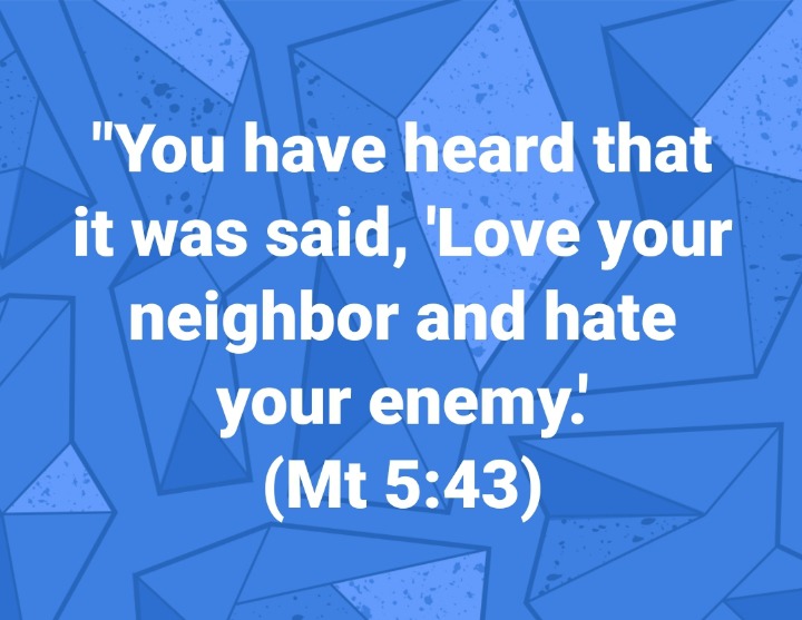"You have heard that it was said, 'Love your neighbor and hate your enemy.' But I tell you: Love your enemies and pray for those who persecute you,(Mt 5:43-44)