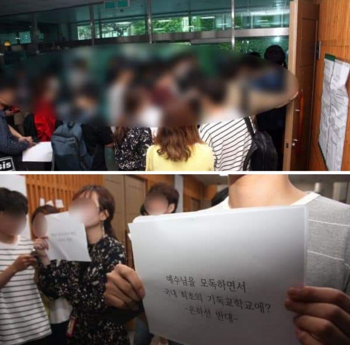 1,200여 학생들 반대서명, 일부는 장소 밖에서 시위