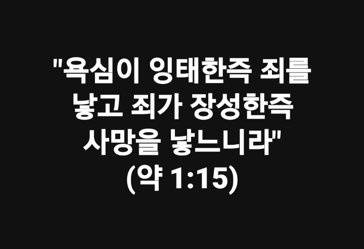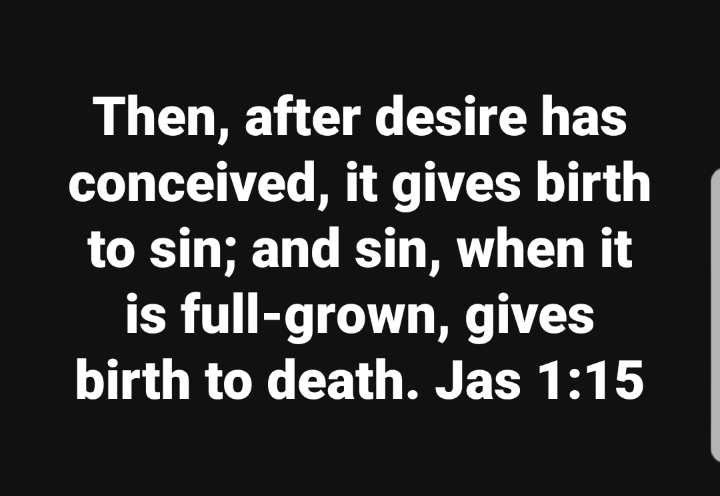 "욕심이 잉태한즉 죄를 낳고 죄가 장성한즉 사망을 낳느니라"(약 1:15) Then, after desire has conceived, it gives birth to sin; and sin, when it is full-