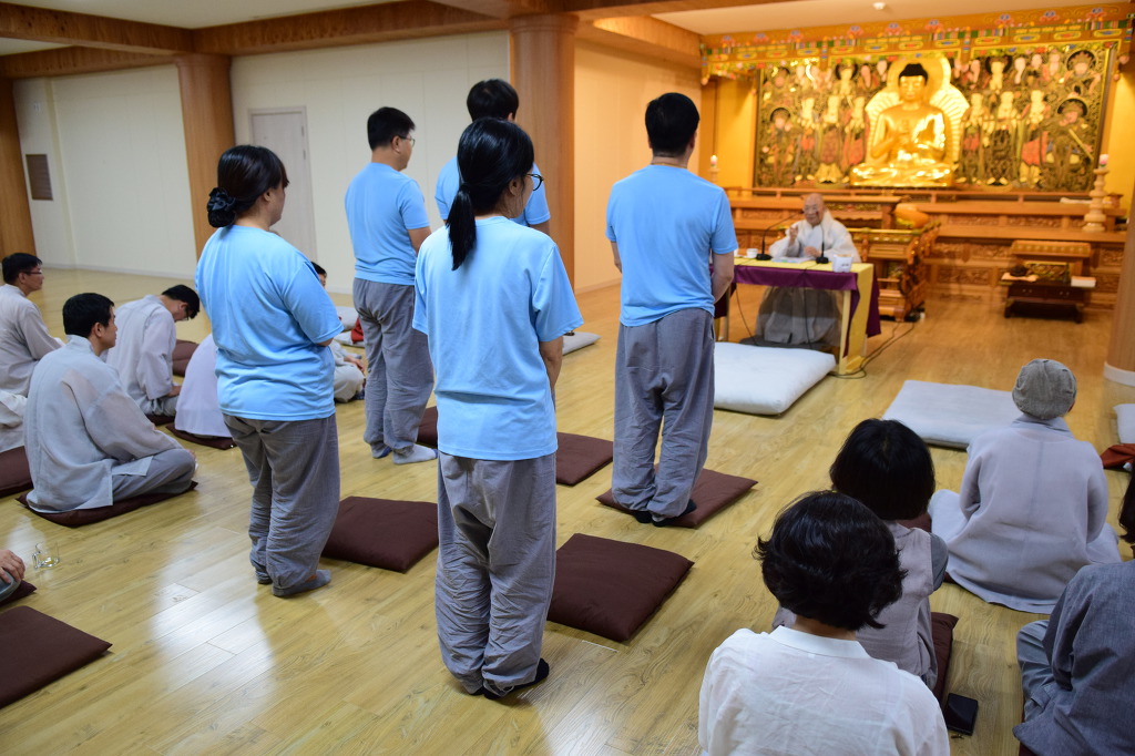 [대중] 어제 법문 듣고, 내가 여태까지 머리로만 풀려고 했구나 하는 생각에 조금 반성도 하게 됐고, 계속해서 저의 두터운 업장을 녹일 수 있게 계속 수행을 하고, 참나를 볼 수 있을 때까지 계속 수행을 해 나가야