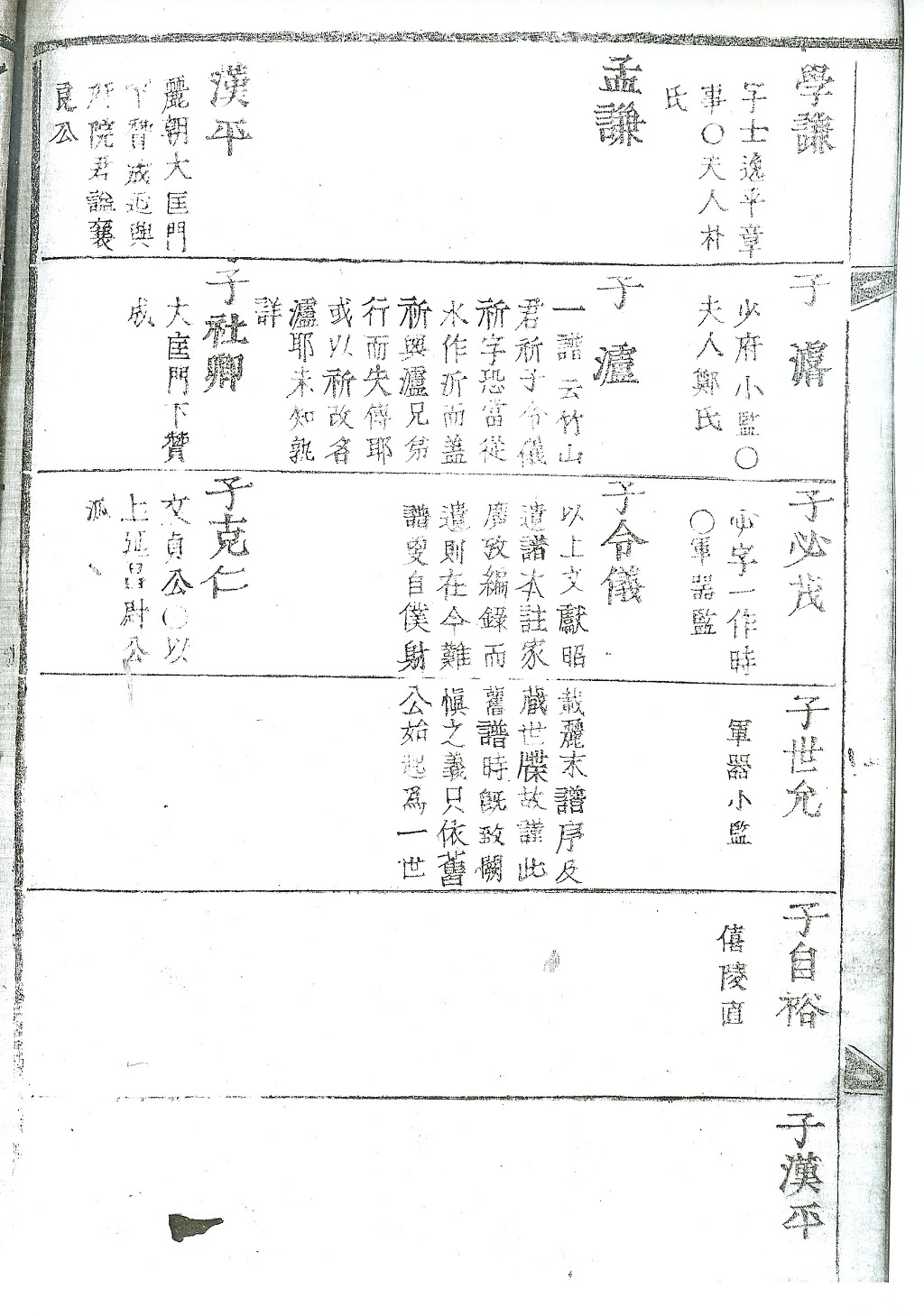 子 학겸(學謙) | 子 맹겸(孟謙) |