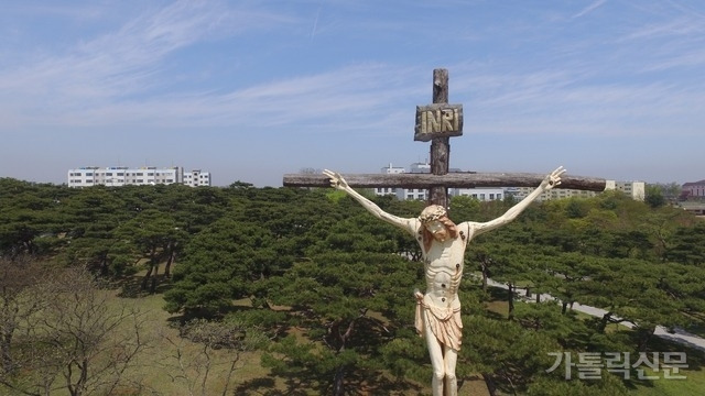 INRI는 라틴어 ‘IESVS NAZARENVS REX IVDÆORVM’의 약자로 ‘유다인들의 임금, 나자렛 사람 예수’라는 뜻이다. 사진은 대전교구 솔뫼성지 야외십자가상. 가톨릭신문 자료사진