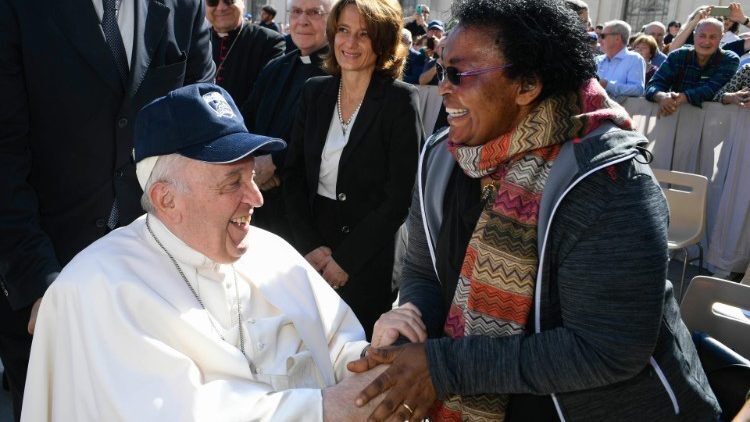 CL 운동 경험을 나눈 한 회원이 교황에게 인사하고 있다.