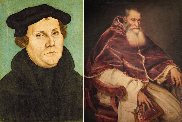 (왼쪽부터) 마르틴 루터와 교황 바오로 3세의 초상화. 출처 위키미디어