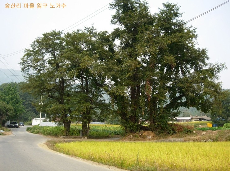 송산마을은 이 노거수 사이 길로 들어간다.