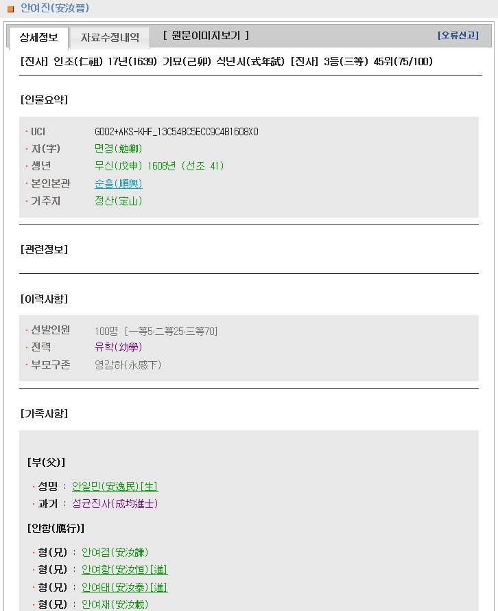 [진사] 인조(仁祖) 17년(1639) 기묘(己卯) 식년시(式年試) [진사] 3등(三等) 45위(75/100)